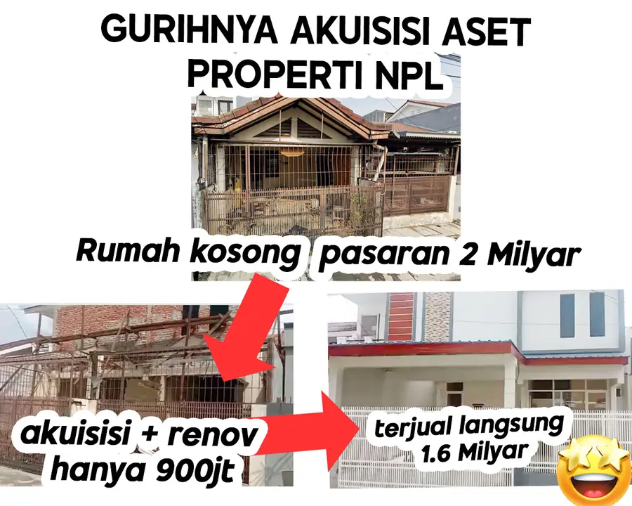 🔥 Coba akuisisi aset pertama, rumah di permata pamulang yang pasarannya 500 jt-an, saya akuisisi hanya dengan 107 juta, dan langsung kejual di 285jt cuma 3 bulan!